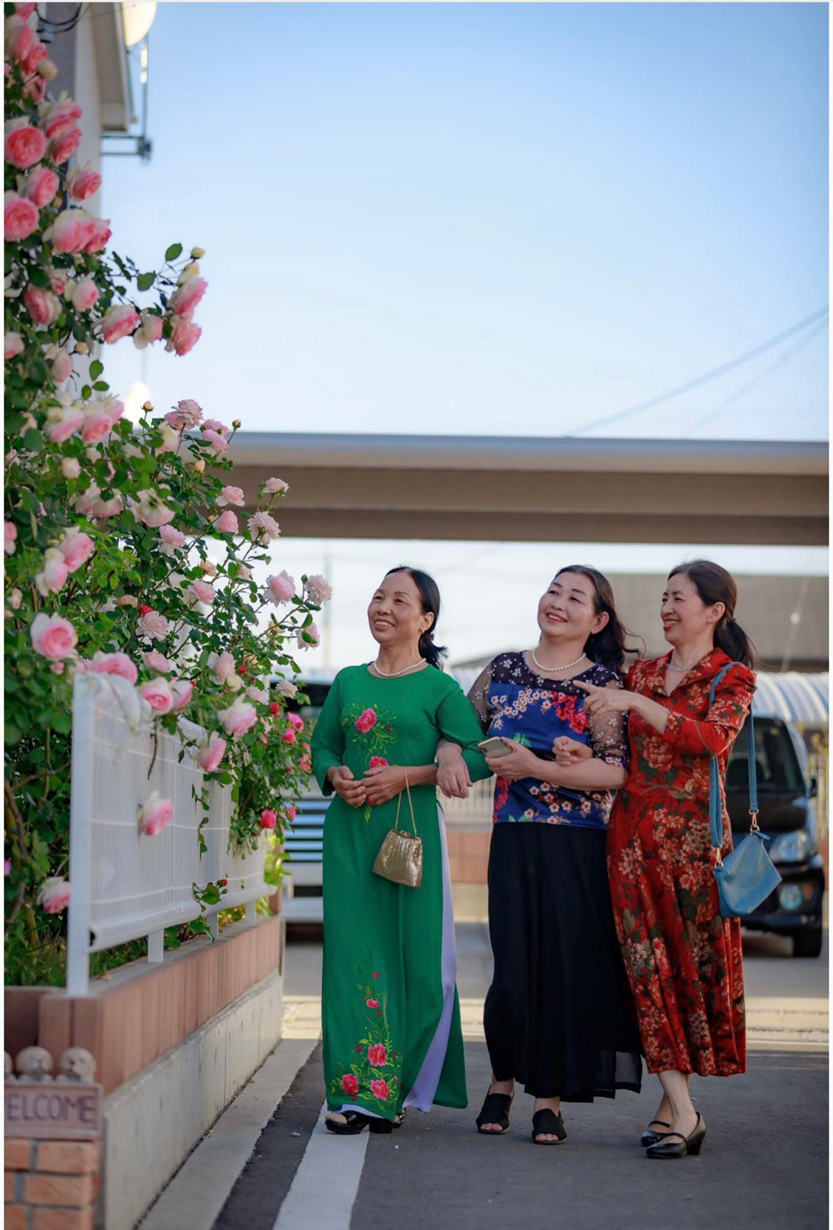 "Mùa hồng năm nay, khu mình lại quây quần trước sân cùng nhau tổ chức tiệc thịt nướng và ngắm hoa hồng, tiếp đón người thân từ Việt Nam sang chơi. Hàng xóm là người Nhật cũng rất thích vườn hồng nhà mình.