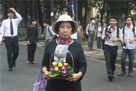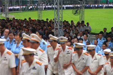 Sáng sớm nay 12/10 tại Hội trường Thống nhất (TP.HCM) người dân, các đoàn cựu chiến binh đến viếng lễ tang Đại tướng từ rất sớm.