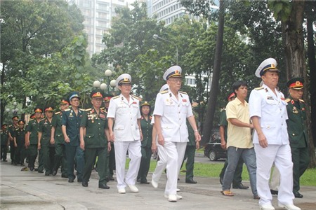 Các đoàn cựu chiến binh thành phố cũng đến viếng từ rất sớm.