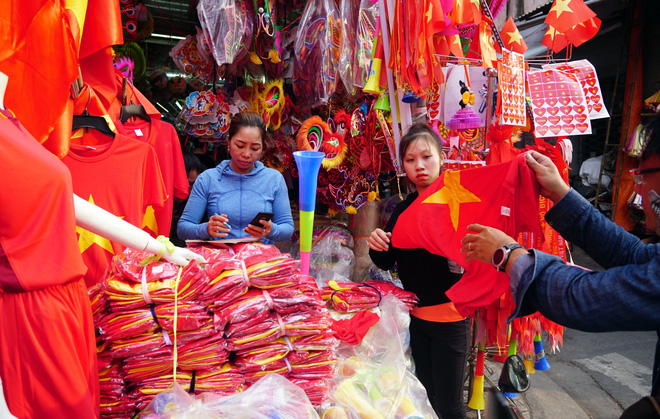 Một cửa hàng ở khu vực đường Hải Thượng Lãn Ông nhộn nhịp người mua kẻ bán. Chủ cửa hàng cho biết, nhân dịp Việt Nam vào bán kết tại ASIAD nên nhập thêm các hàng hóa để bán.
