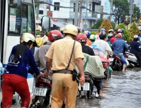 Cũng trong sáng nay nước ngập, lượng người lưu thông giờ cao điểm đông, các tuyến đường như Trường Chinh, Phạm Văn Bạch, Cộng Hòa (quận Tân Bình), ngã tư Gò Mây, Tỉnh lộ 10 (quận Bình Tân)...bị ùn tắc nghiêm trọng.