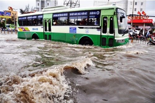 Cả đoạn đường qua trước bến xe Miền Tây chìm trong biển nước khiến hàng ngàn phương tiện xe máy, ô tô bị chết máy. Nhiều người trên đường đến chỗ làm đi vào vùng nước ngập, quần áo ướt sũng. Có người phải quay đầu xe tìm hướng di chuyển khác...
