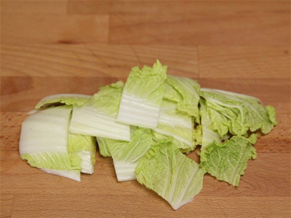 Tách lá cải thảo, đem rửa sạch rồi vẩy ráo. Xếp các lá đều nhau rồi cắt thành khúc dài chừng 3-4cm.