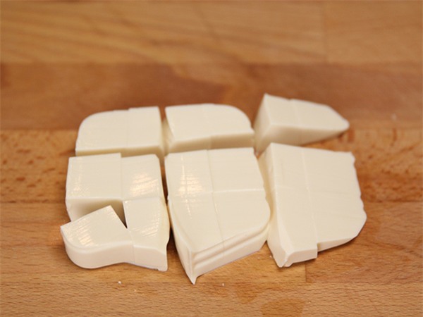 Đậu phụ xắt miếng vuông.