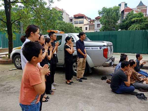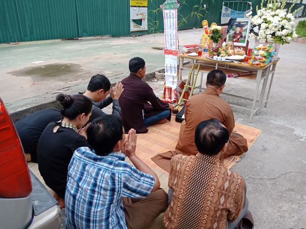 Tại nơi chiếc xe ô tô trong ký túc xá Học viện Báo chí và Tuyên truyền gia đình đã làm lễ cầu siêu cho bé Lê Hoàng L. Bé L. trước đó bị bỏ quên trên chiếc ô tô này suốt hơn 8h đồng hồ rồi tử vong.