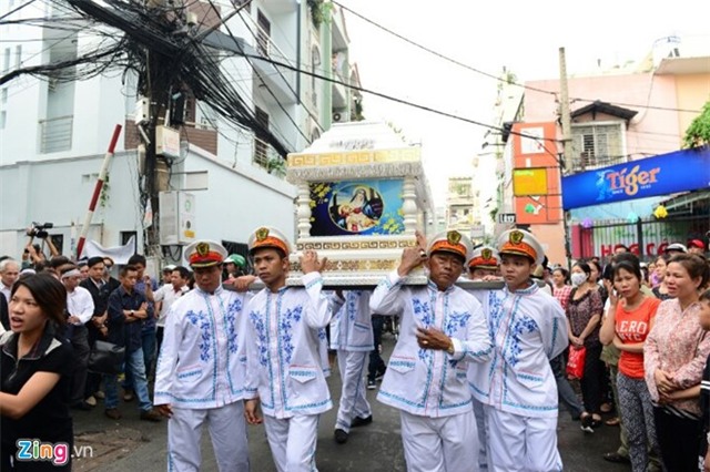 Đoàn xe tang đưa linh cữu Minh Thuận đến nhà thờ lúc 7h45, cha xứ đang chuẩn bị để tiến hành Thánh lễ an táng. Đám đông kéo đến vây kín nhà thờ, nhiều người không vào được phải đứng đợi ở ngoài sân. Theo dự kiến, nghi thức kéo dài một tiếng đồng hồ.