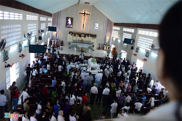 Đúng 8h, cha xứ bắt đầu thực hiện nghi thức, không khí diễn ra trang nghiêm, gia đình yêu cầu phóng viên ngừng tác nghiệp.