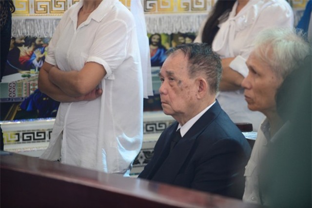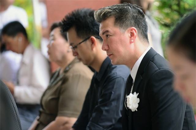 Đàm Vĩnh Hưng cũng kịp có mặt tại nhà thờ. Nam ca sĩ mặc vest đen, cài hoa trắng tiễn đưa Minh Thuận.
