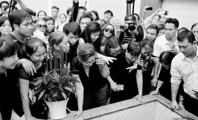 Sau khi linh cữu Minh Thuận được hạ xuống để hỏa táng, mẹ nuôi của anh khóc lặng người. NSƯT Thành Lộc, Nhật Hào mắt đỏ hoe vì xúc động, Quế Vân cũng không kìm nén được cảm xúc. (Trong lúc tang gia hỗn loạn, một số người đã trà trộn vào để móc túi, tuy nhiên, lực lượng bảo vệ đã kịp thời ngăn chặn.)