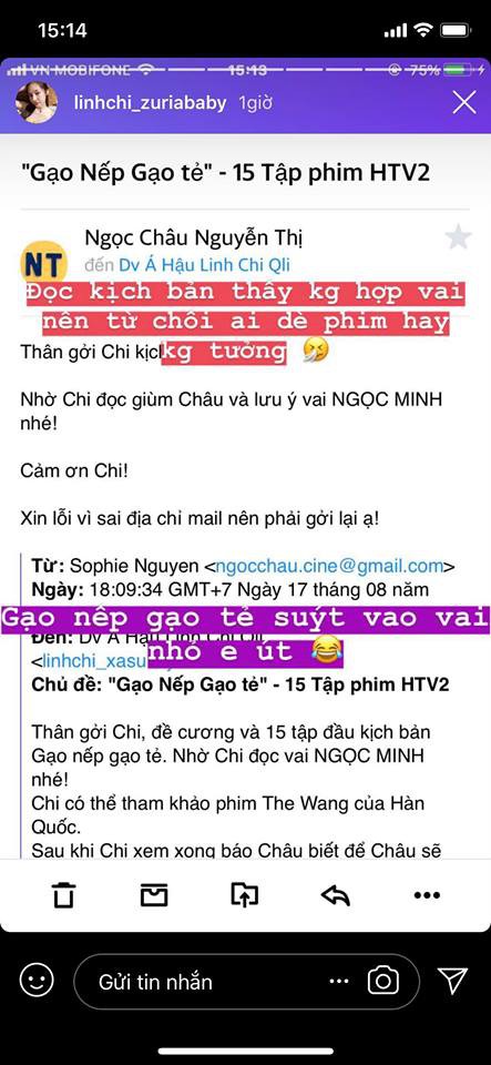Chia sẻ mới đây của á hậu Linh Chi xoay quanh việc được mời vào vai cô em út ngố tàu Ngọc Minh của Gạo Nếp Gạo Tẻ khiến cư dân mạng không khỏi bất ngờ. Có vẻ như sức nóng của bộ phim đã khiến cô nàng tiếc ngẩn ngơ vì đã từ chối vai diễn này.