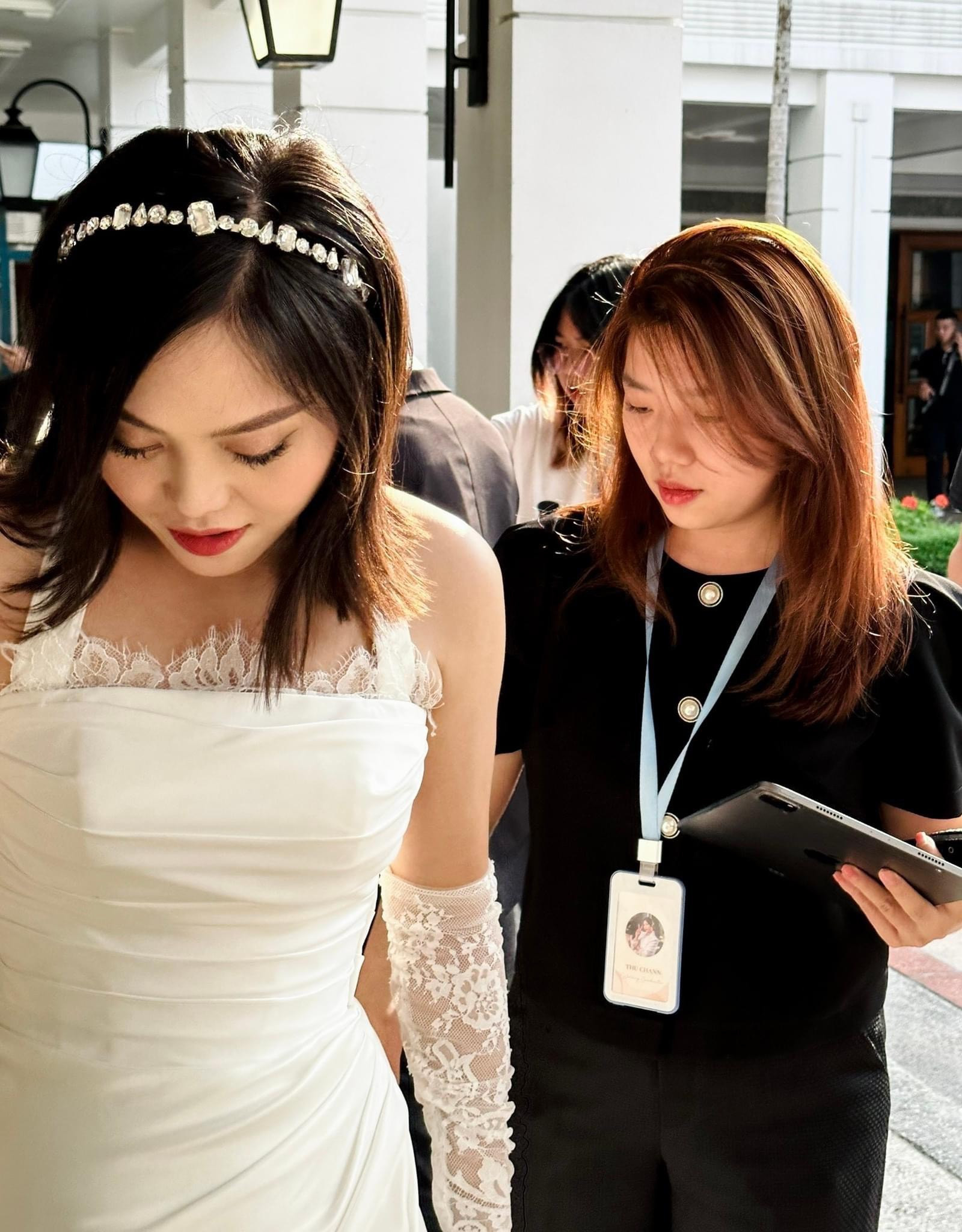 Lê Thu Trang (áo đen) đang hỗ trợ cô dâu trong một đám cưới mà nhóm của cô được thuê làm “planner”