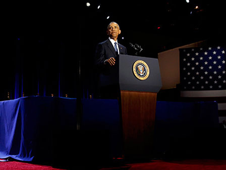 Thay vì phát biểu ở Nhà Trắng giống như người tiền nhiệm George W. Bush, Tổng thống Obama quyết định chọn Chicago - thành phố chứng kiến những bước tiến vượt bậc trong sự nghiệp chính trị của ông.