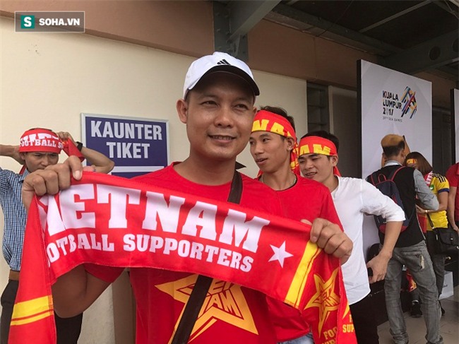 Lẫn trong số CĐV này có anh Trần Văn Lập quê ở Nghệ An, một công nhân xây dựng hiện đang làm việc tại Malaysia đã xin nghỉ làm việc để tiếp thêm lửa cho U22 Việt Nam từ khán đài.