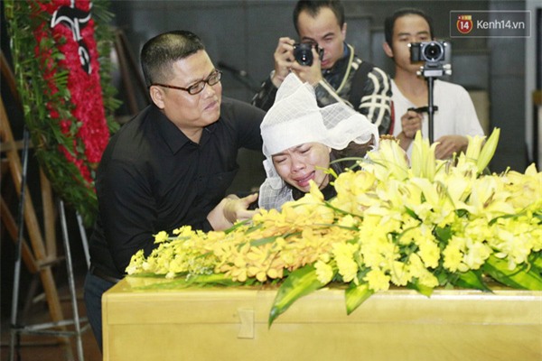 Tuy nhiên, trong lễ tang, chị Mai Hoa đã để cảm xúc của mình được thả trôi. Những người bạn bên cạnh phải dìu chị đứng vững