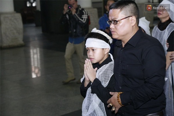 Con trai Trần Lập chắp tay trước di ảnh của bố
