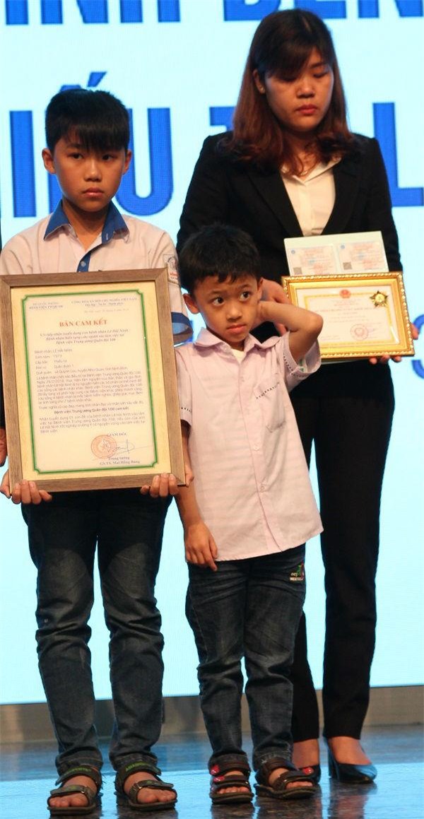 GĐ Bệnh viện Trung ương Quân đội 108 trao thẻ bảo hiểm và cam kết sẽ nhận 2 con của anh Ninh vào làm tại bệnh viện nếu theo học ngành y.
