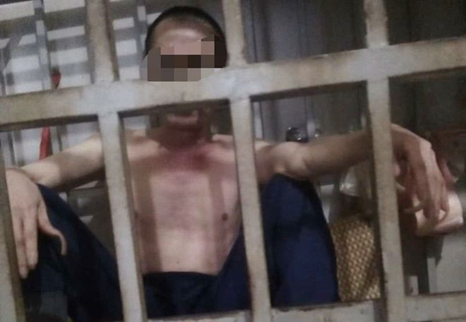 Hình ảnh ông Văn trong lồng sắt. Ảnh: P.N.