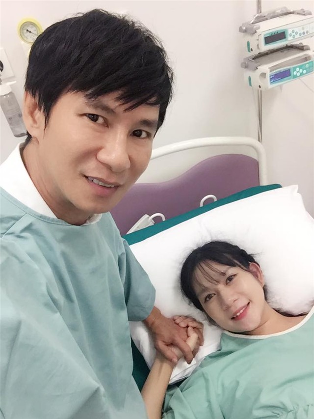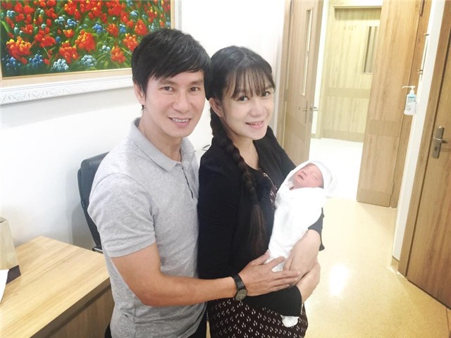 Vợ chồng Hải Hà hân hoan khoe niềm vui mừng đầy tháng con mới sinh.