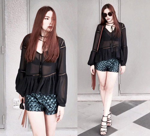 "Bà mẹ một con" Thu Thủy diện áo xuyên thấu kết hợp quần sooc, khoe đôi chân trắng, thon dài