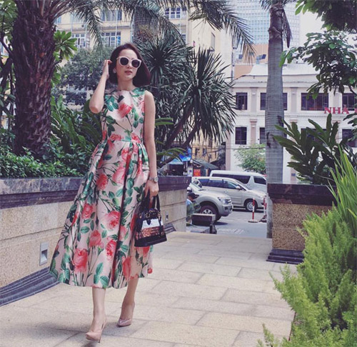 Angela Phương Trinh xinh đẹp và kiêu sa trên phố trong bộ đầm xòe in họa tiết hoa bắt mắt