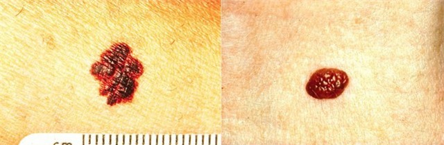Phải: các loại nốt ruồi bình thường. Trái: ung thư melanoma
