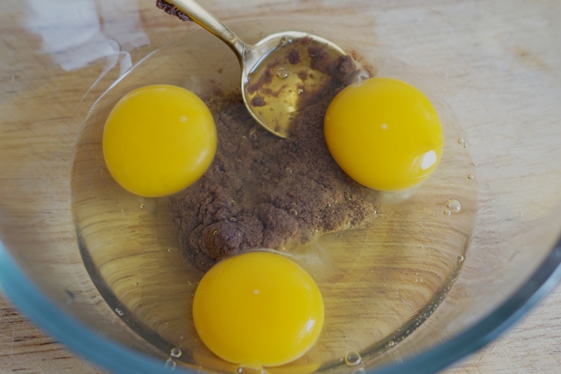 Đổ trứng ra thố, thêm chút rau mùi tây thái nhỏ lên trên.