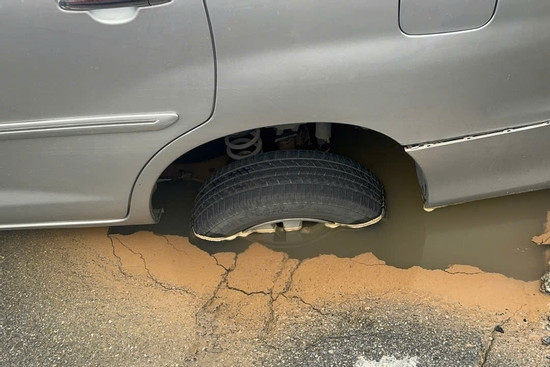 Lượng nước phun ra từ điểm rò rỉ đã làm xói lở nền đất phía dưới, khiến mặt đường không còn khả năng chịu lực, dẫn đến sụt lún và hình thành hố sâu.