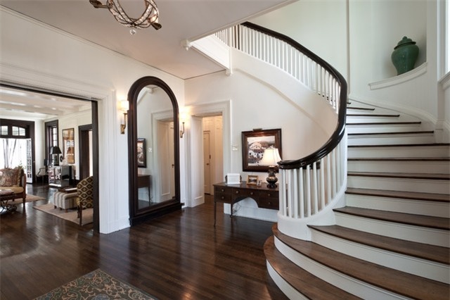 Nếu chân cầu thang kết thúc đối diện ngay trước cửa chính của ngôi nhà thì bạn có thể phong tỏa nguồn khí độc bằng cách giữ cho phần hành lang và cầu thang luôn sáng sủa, thoáng khí.
