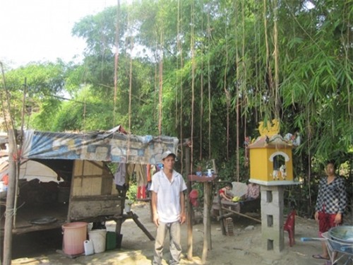 Thấy cuộc sống nhếch nhác của gia đình anh gây mất mỹ quan, ông Nguyễn Kề, tổ trưởng tổ 22 (khu vực 7, phường Kim Long) đã đưa gia đình anh lên chỗ này trú ngụ tạm.