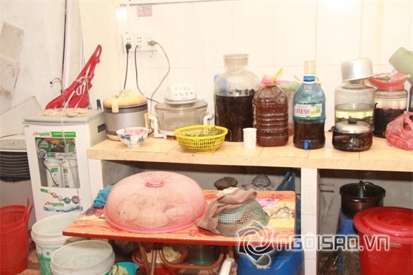 Phòng bếp nhà Hiệp Gà, vì đang có công việc nên đồ đạc xếp đặt khá lộn xộn