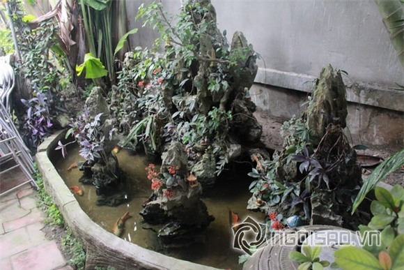 Hòn non bộ và bể cá cảnh trước sân nhà