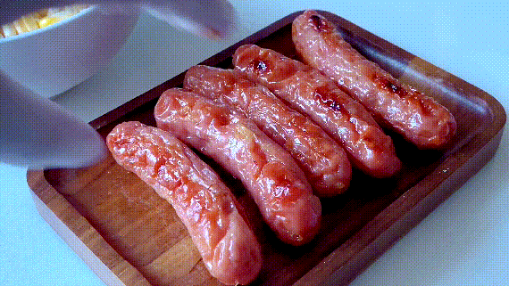 Rải đều ngô ngọt lên bánh mì, sau đó rắc đều lạp xưởng lên trên.