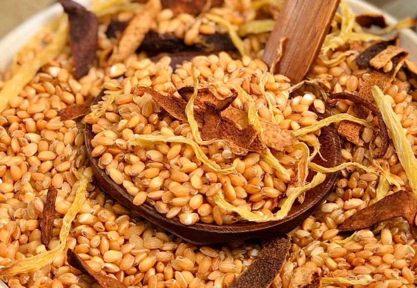 Thành phẩm trà gạo, gừng và vỏ quýt