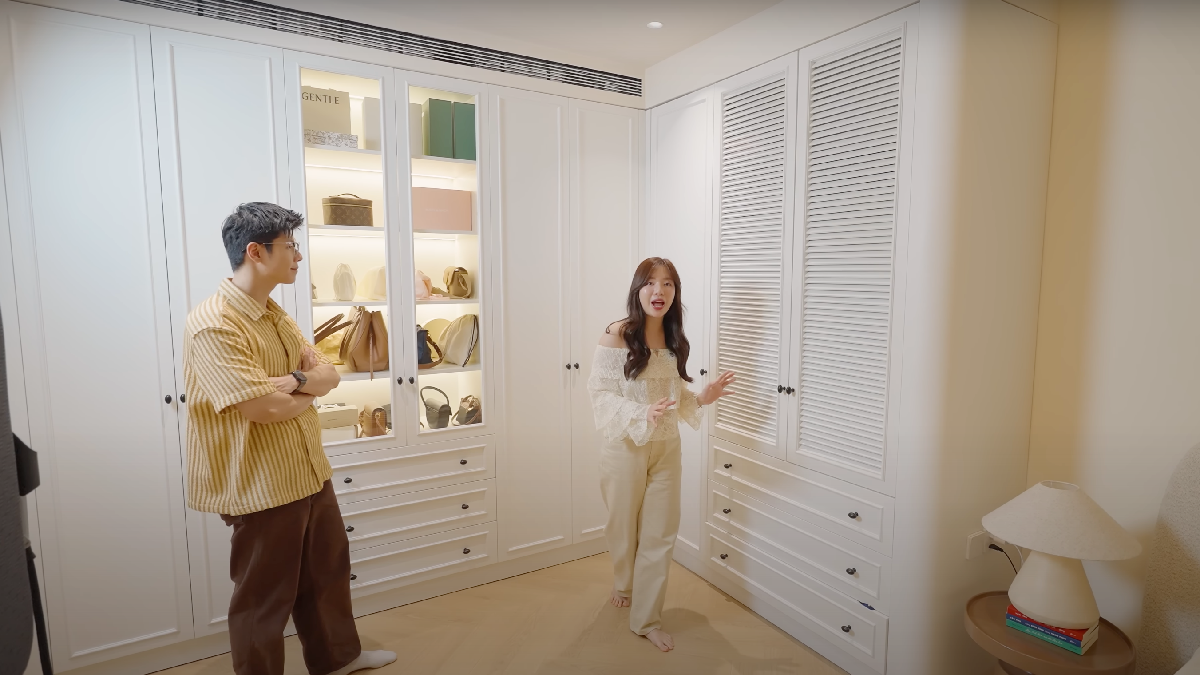 Phòng của cặp song sinh Cue và Cam được trang trí đáng yêu. Phòng ngủ chính của hai vợ chồng rộng rãi với tủ quần áo kịch trần lớn được MC Hương Giang chăm chút kỹ, để làm nền cho các video của cô. Đây là căn phòng đắt tiền nhất trong nhà với loạt nội thất giá thành cao như giường, tủ trang điểm, hệ thống đèn...