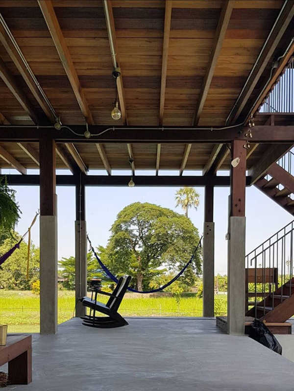 4. Nhà gỗ có tầng hầm cao tọa lạc giữa cánh đồng lúa