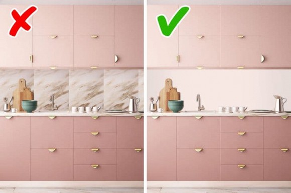 Những vật liệu giả trông giống như thật nhưng thực tế lại trông rất rẻ và không phù hợp. Chúng làm cho toàn bộ bức tranh trông “nặng nề”. Bạn có thể bị đánh lừa thị giác: sẽ dễ dàng phát hiện ra những đường nét giống nhau và cùng một họa tiết. Vì vậy, thay vì mua gạch “giống như đá cẩm thạch”, hãy mua những loại gạch đẹp chỉ có một màu hoặc một hoa văn đơn giản.