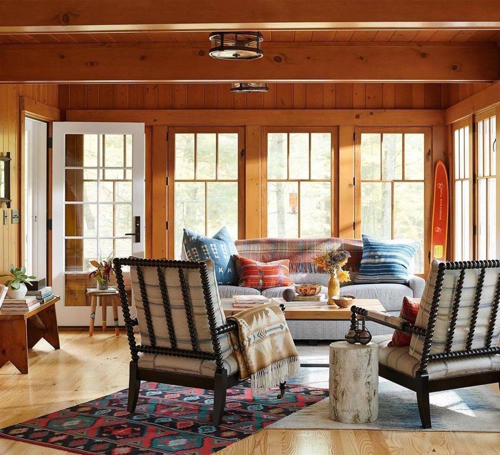 Hãy tưởng tượng phòng tắm nắng của bạn với trần nhà bằng gỗ hoặc với cửa sổ sáng lớn - một nơi nghỉ ngơi hoàn hảo cho cả gia đình. Chơi với các sắc thái gỗ khác nhau, từ gỗ thông sáng màu cho trần nhà đến gỗ sồi cho sàn nhà và gỗ đánh vecni màu ngà cho cửa sổ, bạn sẽ có được một bầu không khí mộc mạc. Hãy thử thêm đồ nội thất bằng liễu gai và bếp đốt củi.