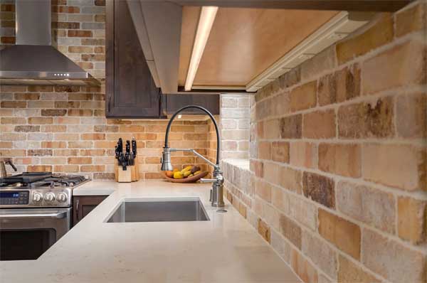 Gạch tự nhiên cũng là lựa chọn của không ít gia đình sử dụng để ốp tường nhà bếp. Chúng thường có bề mặt thô, mộc mạc mang đậm vẻ đẹp tự nhiên. Hiệu quả tạo ra giúp đem đến một nét đẹp rất riêng cho không gian nhà bếp.