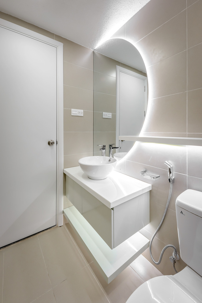 Phòng tắm thôi cũng đánh đèn như sân khấu, tha hồ chụp ảnh selfie không lo thiếu sáng!