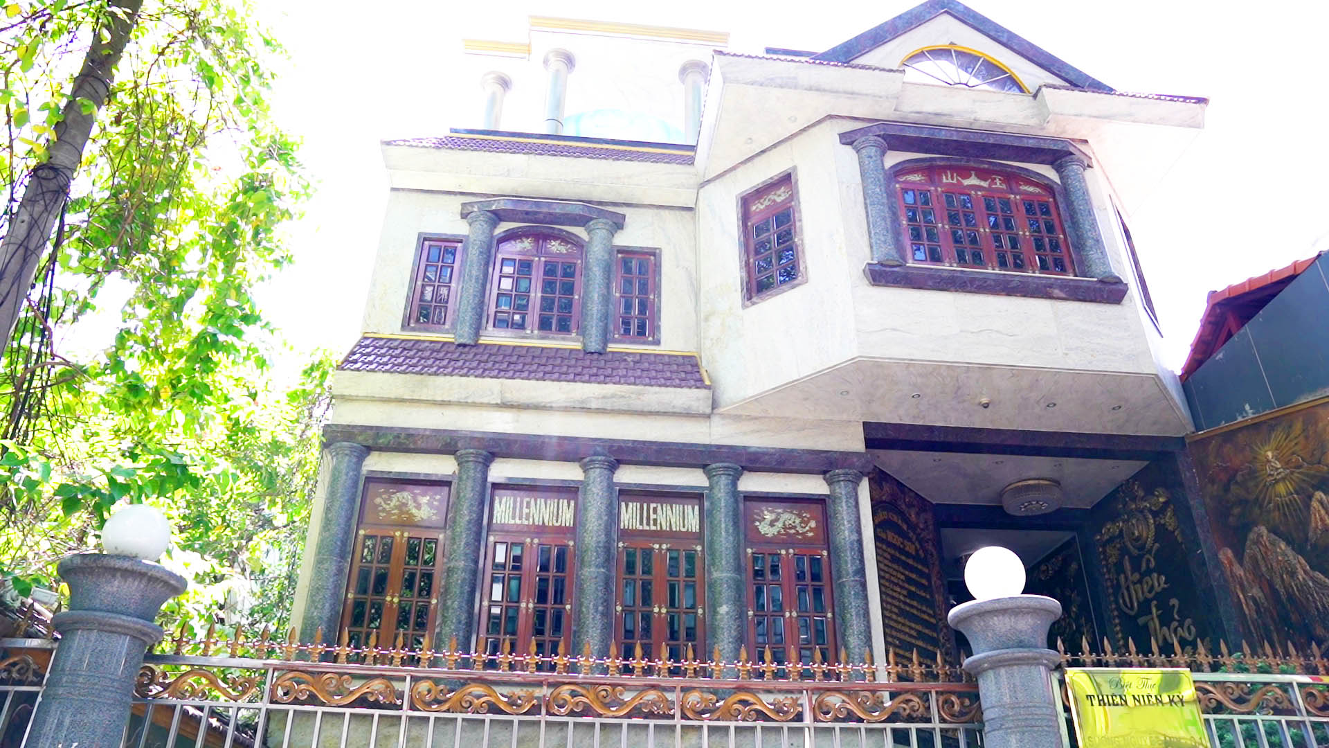 Căn biệt thự này được Ngọc Sơn đặt tên Thiên niên kỷ, tọa lạc tại mặt tiền đường Sương Nguyệt Ánh (quận 1,TP.HCM) gây ấn tượng với lối kiến trúc riêng. Từ bên ngoài nhìn vào, nhiều người không khỏi choáng ngợp bởi độ hoành tráng