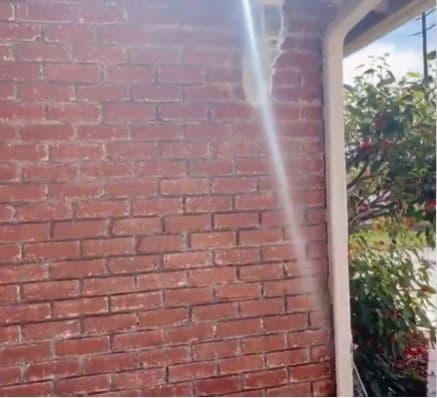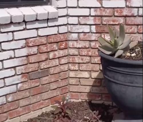 Phần tường gạch sau khi dùng máy chà và sơn lại đã đẹp hơn trước.