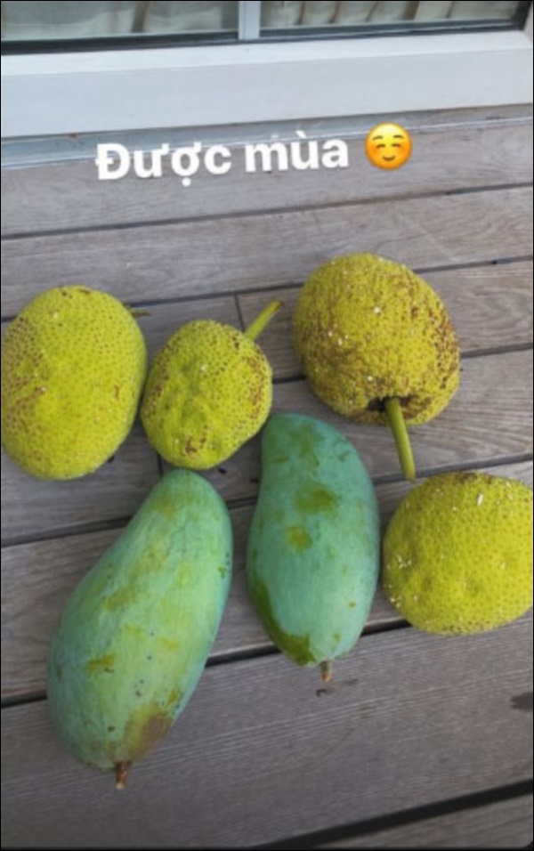 Cũng dễ nhận thấy dù ở biệt thự triệu đô, kinh doanh nhiều cửa hàng lớn, thế nhưng nữ diễn viên "Bỗng dưng muốn khóc" vẫn có một lối sống giản dị. Cô không chỉ chăm chỉ nấu ăn, làm bánh mà còn tự trồng rau sạch, thích chăm vườn hoa và cũng đích thân thu hoạch hoa quả mỗi khi vào mùa. "Niềm vui của người nông dân sáng thu hoạch xoài. Trái này gần 1.2kg thôi chứ mấy", Hà Tăng hạnh phúc chia sẻ cây trái vườn nhà.