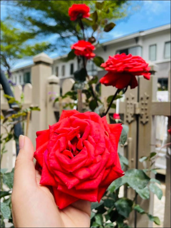 Ngoài dạ yến thảo đủ màu treo khắp nơi thì vườn nhà Nhật Kim Anh còn trồng nhiều hoa hồng.