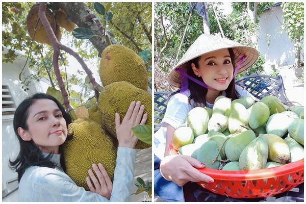 Mẹ ruột và Hồng Đào thay phiên nhau chăm sóc khu vườn. Hai mẹ con nữ nghệ sĩ trồng các loại rau Việt Nam và nhiều loại hoa như cúc, trà my, lồng đèn ở cả sân sau và sân trước.