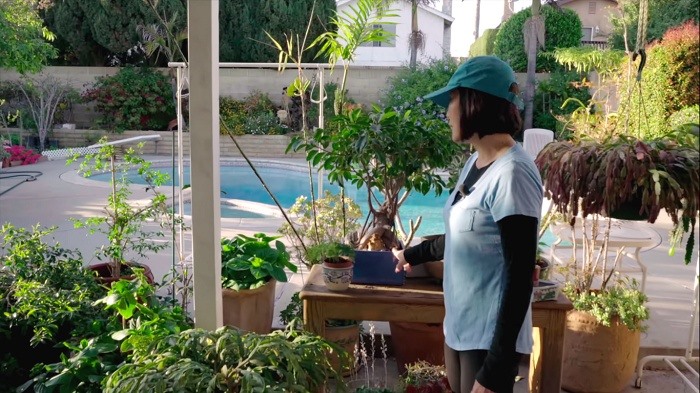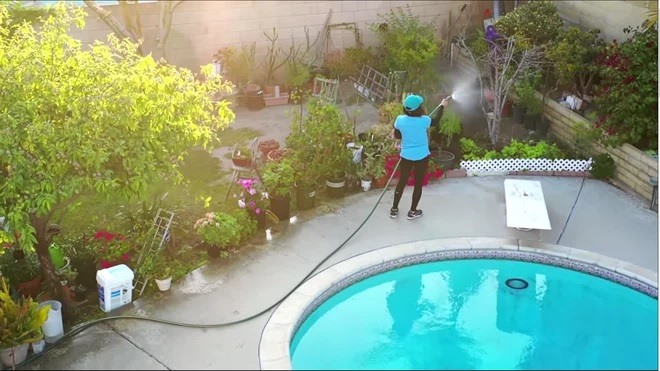 Nữ nghệ sĩ vào thời gian rảnh rỗi đã tự tay tưới cây, trồng hoa quanh khu vực hồ bơi.