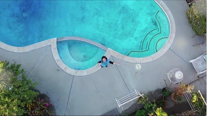 Khu vườn và hồ bơi của Hồng Đào nhìn từ trên cao.