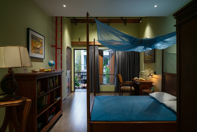 Cũng như sự tỉ mỉ với phần mặt dựng, không gian bên trong càng được chú trọng hơn. Bố cục ngôi nhà được chia thành 1 phòng khách - 1 phòng bếp kết hợp phòng ăn có tầm nhìn mở ra khoảng sân vườn - 4 phòng ngủ - 1 phòng thờ - 2 không gian đọc sách và làm việc.