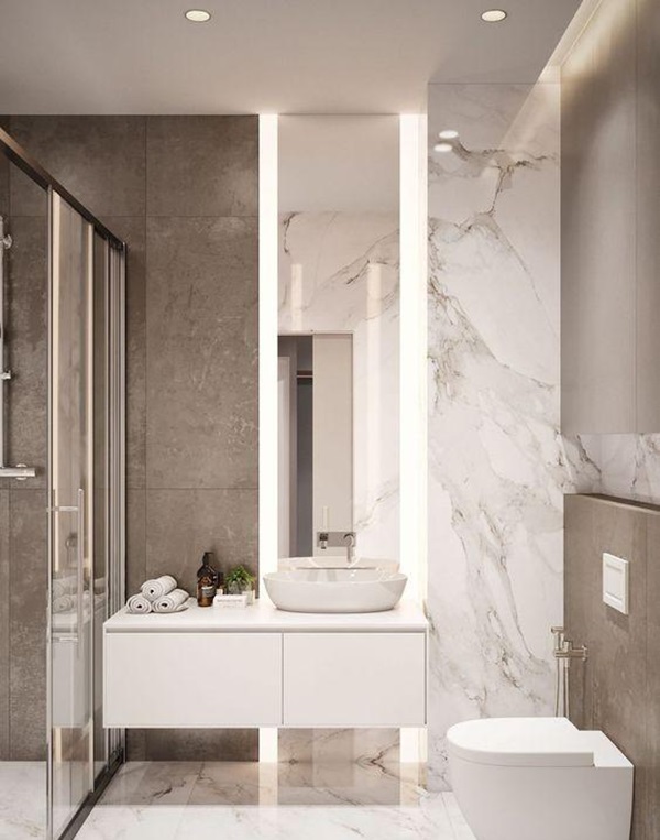 Ngoài ra, nên lựa chọn các thiết bị thông minh gắn tường, sắp xếp đồ đạc gọn gàng để tiết kiệm diện tích nhất. Cho dù thích trưng bày nhưng phải xem xét món đồ đó có hợp với không gian phòng tắm nhà mình không.