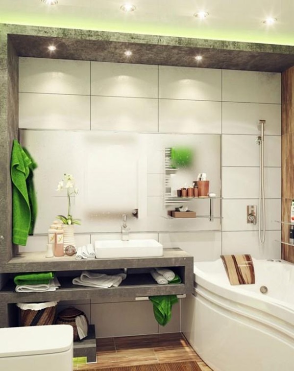 Trước tiên bạn nên quan tâm đến việc lựa chọn màu sắc. Theo các nhà thiết kế, nếu bạn chọn gam màu trung tính, phòng tắm nhà bạn sẽ trông nhỏ hơn về mặt thị giác. Vì vậy, bạn nên chọn các gam màu tương phản với nhau để tăng tác động thị giác, chẳng hạn như đen và trắng, xám và trắng, xanh lá và xanh lam, xanh băng và xanh ngọc. Ngoài ra, sử dụng vật liệu xây dựng màu sáng tạo cũng giúp không gian phòng tắm đẹp rộng hơn.