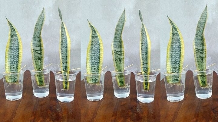 Đây là phương pháp nhân giống cây lưỡi hổ cực kỳ độc đáo và dễ làm, tính thẩm mỹ cao. Cây thủy sinh không cần chăm sóc nhiều mà chỉ cần thay nước là được. Đợi khi cây lưỡi hổ ra rễ, bạn có thể trồng vào trong đất.